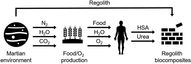 Çalışmanın en dikkat çeken noktalarından biri, taş gibi bir maddenin kısmen kandan yapılabileceği. Aktarıldığına göre, insan kanının taşıdığı ve ondan elde edilen bir protein, Mars tozu ile birleştirildiğinde betona benzeyen, basınca dayanıklı bir malzeme oluşturabiliyor. Hatta içine üre koyulursa ki kendisi idrarda, terde ve gözyaşında epey bulunur, hedeflenen betonun gücünü yüzde 300 civarlarında artırabilirmiş.