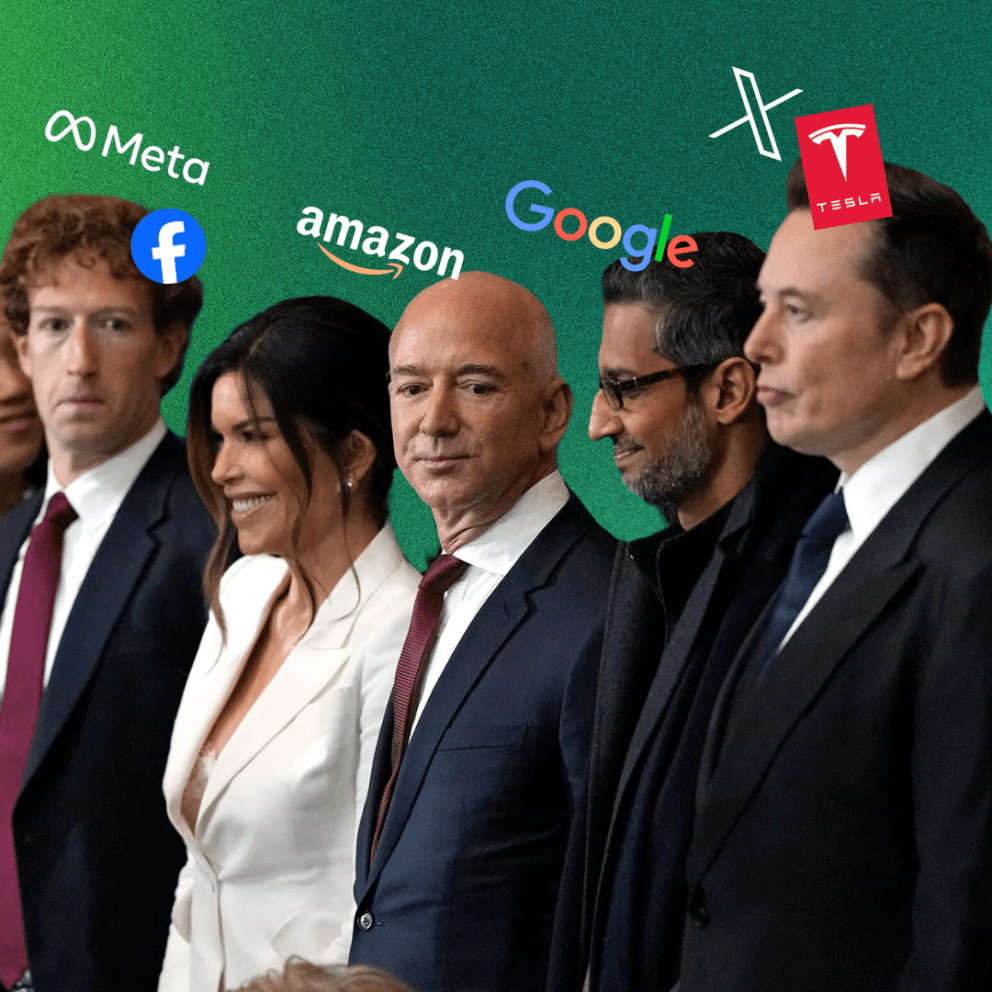 ABD başkanı Donald Trump’ın seçim zaferinin ardından düzenlenen yemin töreni de böylesi karelere sahne oldu. Özellikle LGBTİ+ ve göçmen karşıtı tutumu ve politikalarıyla bilinen, yanlış haber ve dezenformasyon yayma gibi başlıklarda sicili bir hayli kabarık olan Trump’ın kutlamasında teknoloji ve sosyal medyanın devleri de onu yalnız bırakmadı. X’in sahibi Elon Musk, Meta grubunun başındaki isim Mark Zuckerberg, Amazon’un kurucusu Jeff Bezos, Apple lideri Tim Cook, medya patronu Rupert Murdoch ve Google CEO’su Sundar Pichai o karede Trump’ın yanındaydı. Ki bu dev isimlerin çoğu birbirlerine rakip, aynı kareye girmeleri neredeyse imkansız. Fakat söz konusu çıkarlar olunca işler değişiyor. Sözün özü, hepsi oradaydı yani!